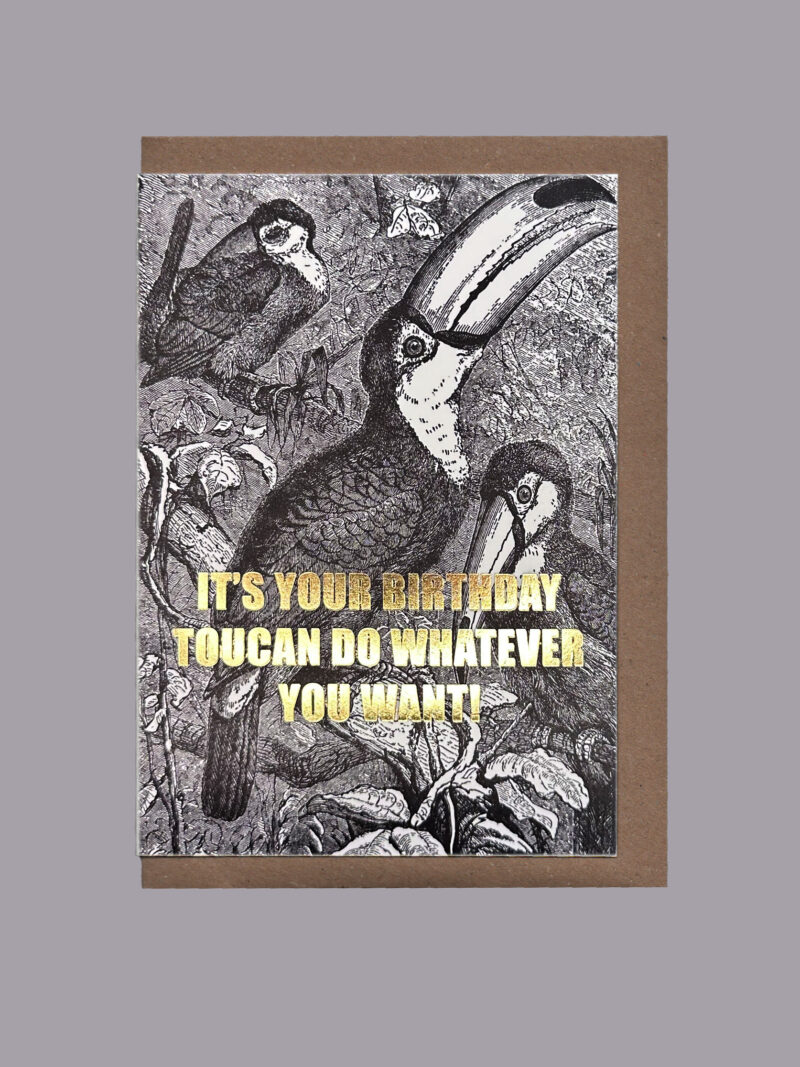 Blank inside. Letterpress card printed in small batches on an antique press using ecologically sound paper, milled in the UK. A6 350gsm card (10.5 x 14.8cm) with brown kraft envelope and recyclable cello.