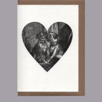 Blank inside. Letterpress card printed in small batches on an antique press using ecologically sound paper, milled in the UK. A6 350gsm card (10.5 x 14.8cm) with brown kraft envelope and recyclable cello.